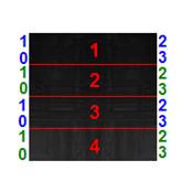 Ezzel az objektum úgy fog kinézni, hogy a textúránk 4x jelenik meg függőlegesen. Azonban a vertex-párosokhoz tartozó a Coordinates parancs 3. számjegyének módosításával tetszőlegesen változtathatjuk a textúra arányait függőlegesen. A példa szerint az 1 egységnyi textúrát 4 egyenlő részre kell osztani: